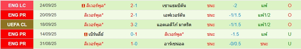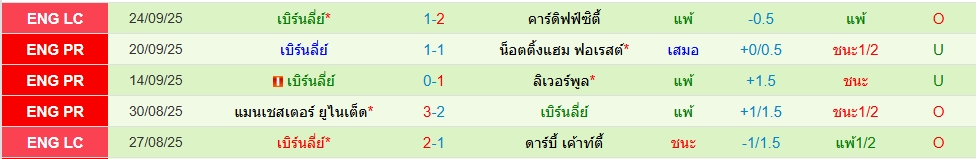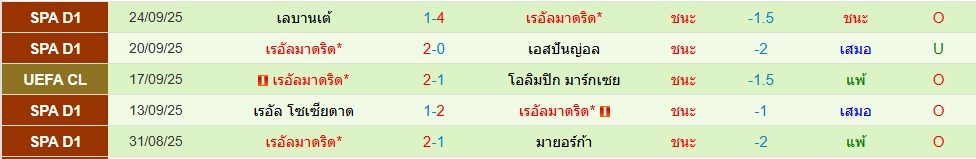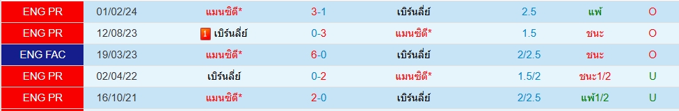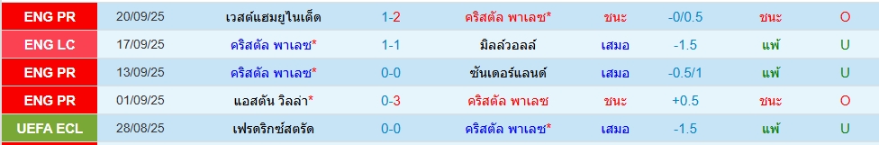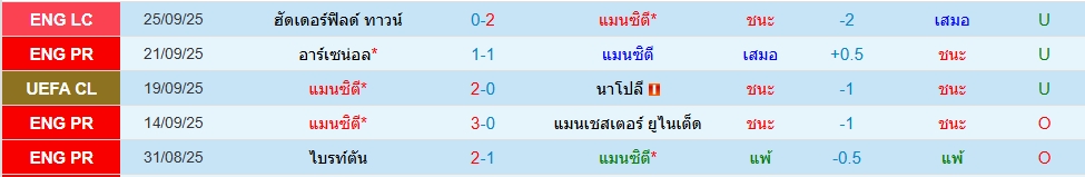 สถิติ 5 นัดหลังสุดของทั้ง 2 ทีม