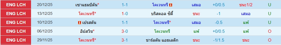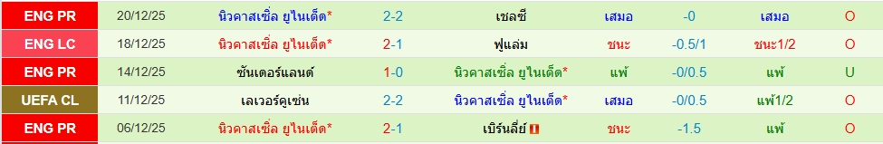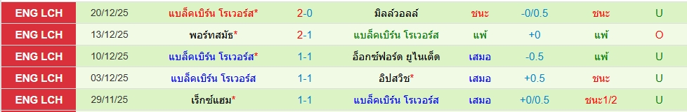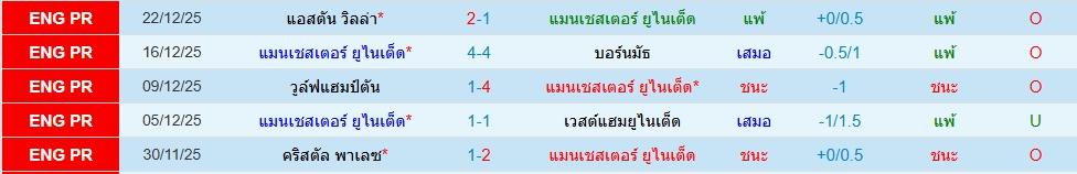 สถิติ 5 นัดหลังสุดของทั้ง 2 ทีม