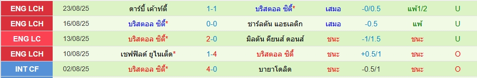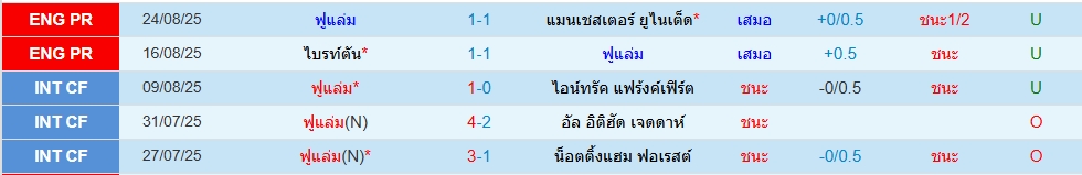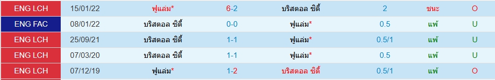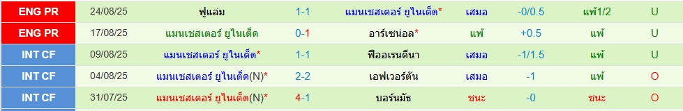 สถิติ 5 นัดหลังสุดของทั้ง 2 ทีม