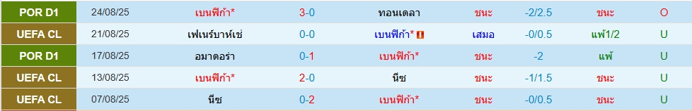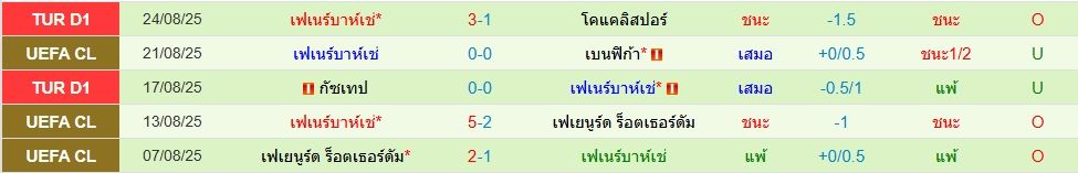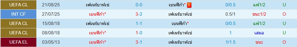 เบนฟิก้า(5นัด 8ประตู)เฟเนร์บาห์เช่(5 นัด 9ประตู)ยูฟ่า แชมเปี้ยนส์ลีก รอบเพลย์ออฟ (นัดสอง) ภาพรวมเกมนี้เจ้าบ้านเปิดเกมก่อนแน่นอน เพราะเกมนี้ได้เล่นในบ้าน โดย 5 นัดหลังสุด สูงไป 1 เกม ทางด้านทีมเยือนเฟเนร์บาห์เช่ น่าจะมาเล่นเกมสวนแน่ เพราะมาเยือน โดย 5 นัดหลังสุด สูงไป 3 เกม ราคาเปิดมาสองลูกครึ่ง ราคากำลังดี กดสูงไปเลย