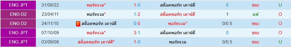 พอร์ทเวล(5นัด 5ประตู)สต็อคพอร์ท(5 นัด 6ประตู)ลีกวัน อังกฤษ ภาพรวมเกมนี้คาดว่าทีมเยือนเป็นฝ่ายเปิดเกมก่อนแน่ เพราะฟอร์มดีขึ้นเรื่อยๆ โดย 5 นัดหลังสุด ต่ำไป 3 เกม ทางด้านเจ้าบ้านพอร์ทเวล น่าจะมาแพ็คและรอเล่นเกมสวน โดย 5 นัดหลังสุด ต่ำไป 5 เกม ราคาสองลูกครึ่ง ราคาแพงไปนิด น่าจะไปทางต่ำ