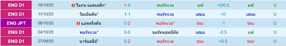 สถิติ 5 นัดหลังสุดของทั้ง 2 ทีม