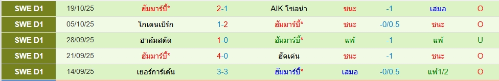 มัลโม่(5นัด 7ประตู)ฮัมมาร์บี้(5นัด 11ประตู)สวีเดน ออลสเวนส์คาน ภาพรวมเกมนี้เป็นคาดว่าทีมเยือนเป็นฝ่ายเปิดเกมบุกใส่ เพราะกำลังมั่นใจเลย โดย 5 นัดหลังสุด สูงไป 4 เกม ทางด้านเจ้าบ้านมัลโม่ น่าจะมาเล่นให้รัดกุม โดย 5 นัดหลัง สูงไป 4 เกม ราคาเปิดมาสองลูกครึ่ง ราคาโอเคเลย กดโอเวอร์ได้เลย