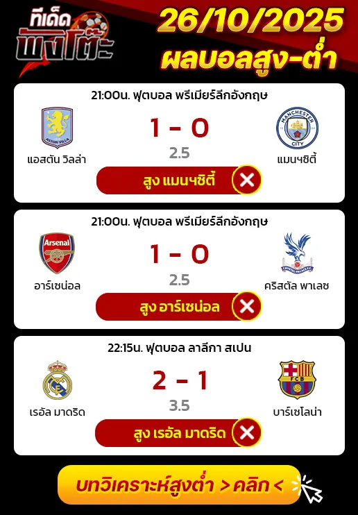 ทีเด็ดสกอร์สูงต่ำ 27/10/25
