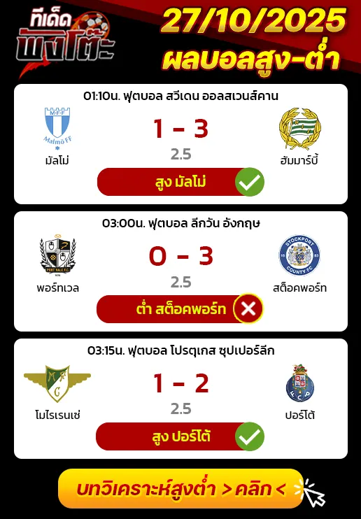 ทีเด็ดสกอร์สูงต่ำ 28/10/25
