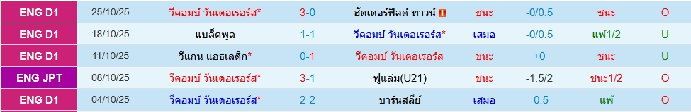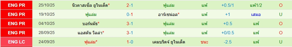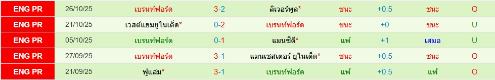 สถิติ 5 นัดหลังสุดของทั้ง 2 ทีม