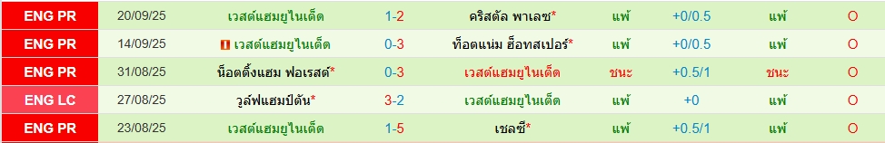 สถิติ 5 นัดหลังสุดของทั้ง 2 ทีม
