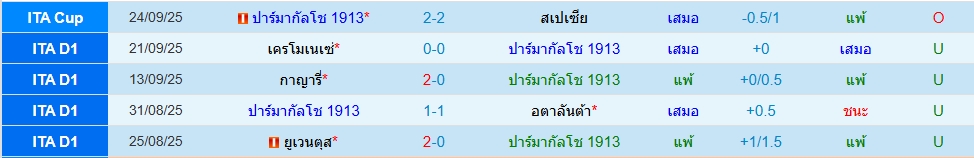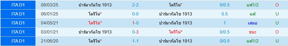 ปาร์ม่า(5นัด 3ประตู)โตริโน่(5นัด 2ประตู)กัลโช่ เซเรียอา อิตาลี ภาพรวมเกมนี้เป็นคาดว่าทีมเยือนเป็นฝ่ายเปิดเกมบุกใส่ เพราะฟอร์มดีกว่า โดย 5 นัดหลังสุด ต่ำไป 3 เกม ทางด้านเจ้าบ้านปาร์ม่า น่าจะมาแพ็คตรงกลางและเล่นเกมสวน โดย 5 นัดหลัง ต่ำไป 4 เกม ราคาเปิดมาสองลูกครึ่ง ราคาสูงไป น่าจัดไปต่ำ