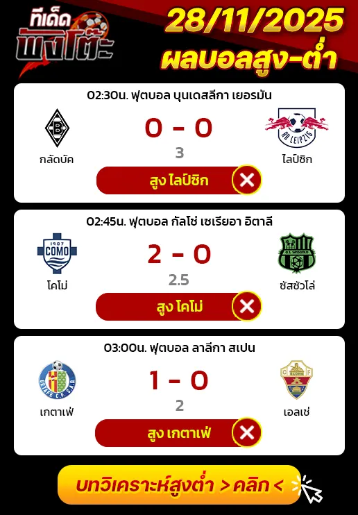 ทีเด็ดสกอร์สูงต่ำ 29/11/25