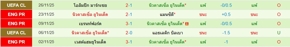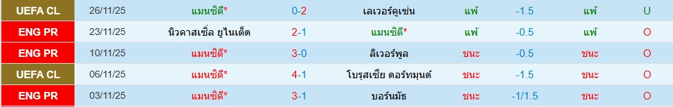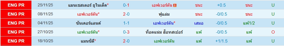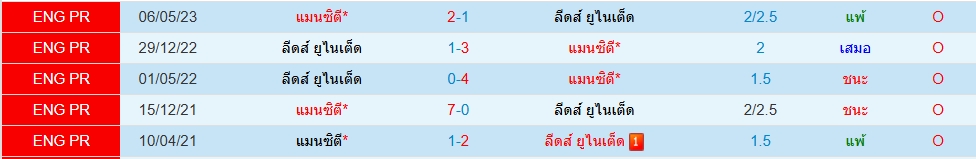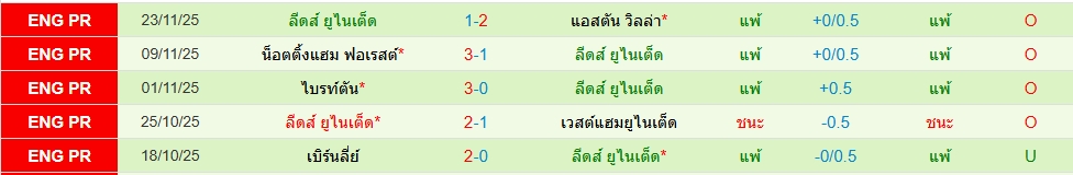 สถิติ 5 นัดหลังสุดของทั้ง 2 ทีม