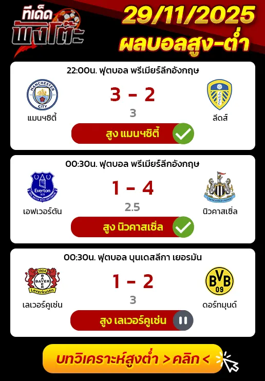 ทีเด็ดสกอร์สูงต่ำ 30/11/25
