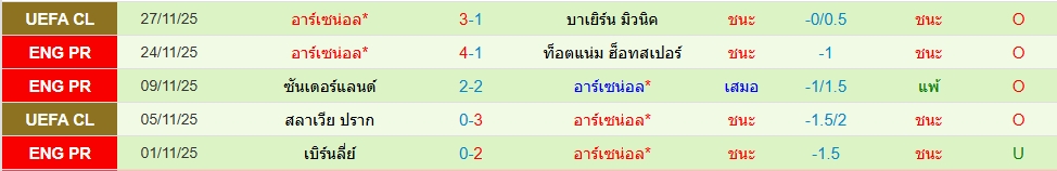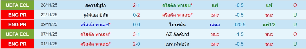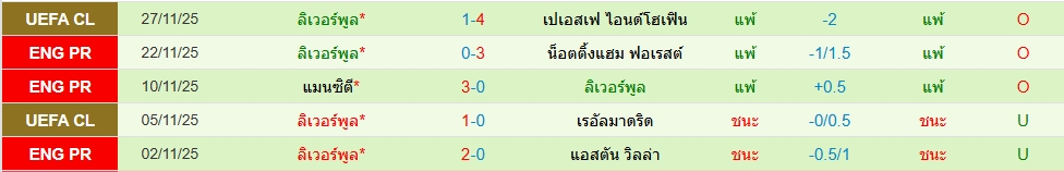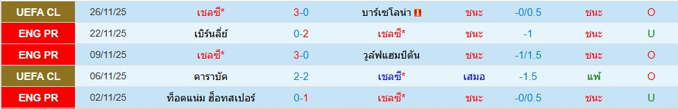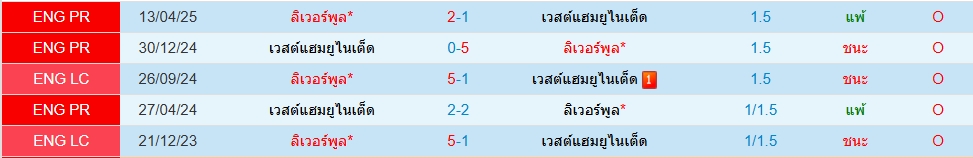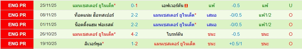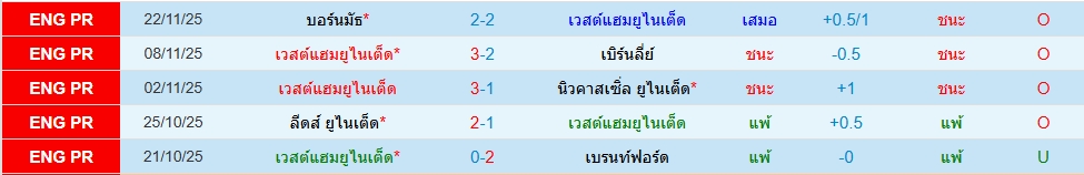สถิติ 5 นัดหลังสุดของทั้ง 2 ทีม