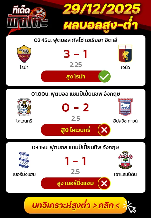 ทีเด็ดสกอร์สูงต่ำ 30/12/25