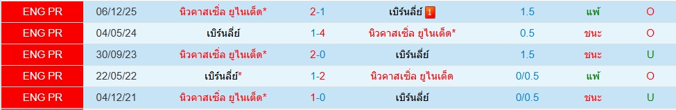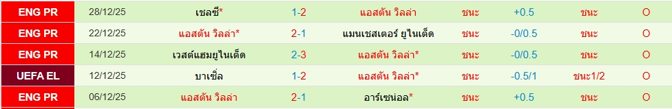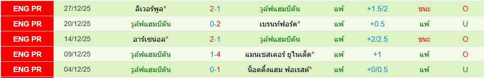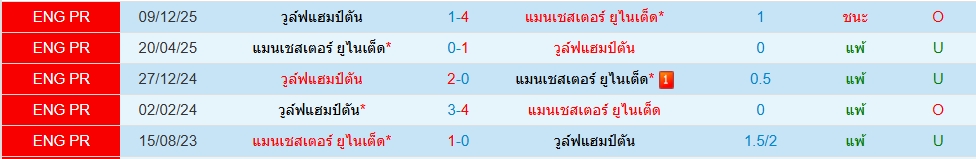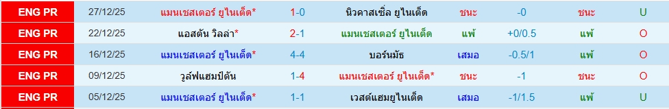 สถิติ 5 นัดหลังสุดของทั้ง 2 ทีม