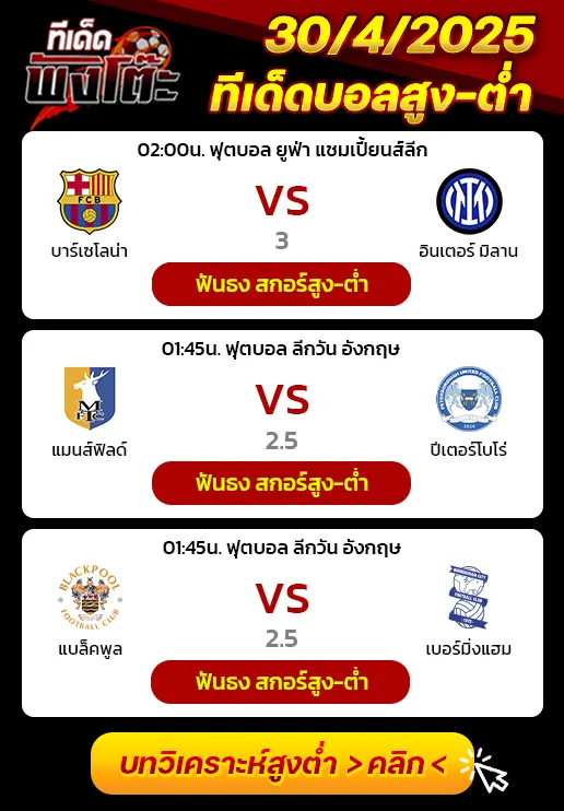 ทีเด็ดบอลสเต็ป 30/04/2025