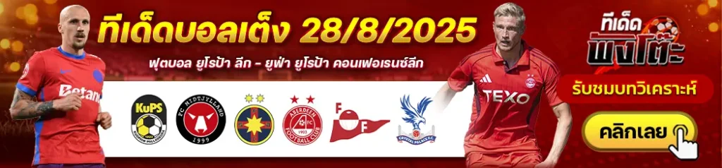 ทีเด็ดบอลเต็ง 28/08/25 เฟรดริคสตัด vs คริสตัล พาเลซ คูพีเอส vs มิดทิลแลนด์ สเตอัว บูคาเรสต์ vs อเบอร์ดีน ผลงานของเมื่อวาน เฟรดริคสตัด vs คริสตัล พาเลซ วิเคราะห์บอลยูโรป้า คอนเฟอเรนซ์ลีก